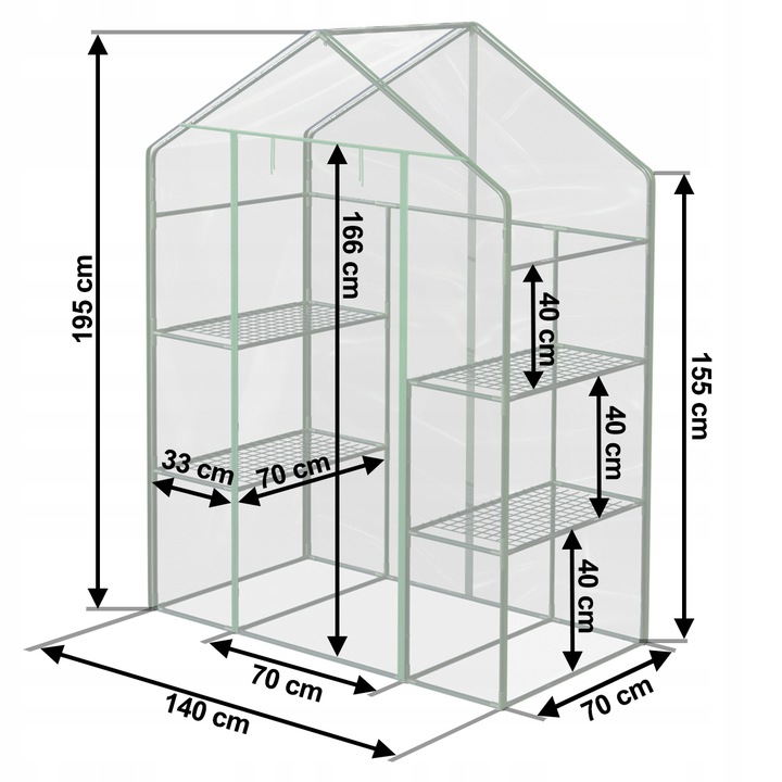 Szklarnia z transparentnym poszyciem o gramaturze 110 g/m2 pozwala na maksymalne wykorzystanie światła oraz ciepła i wytworzenie odpowiedniego mikroklimatu.