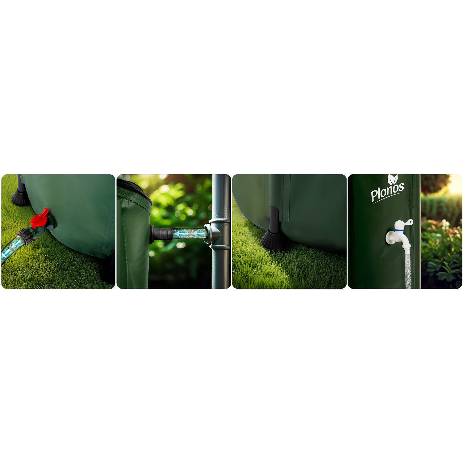 Do zbiornika można łatwo podłączyć wąż ogrodowy, co umożliwia wygodne podlewanie grządek, trawnika czy roślin w szklarni. Dzięki temu deszczówka staje się łatwo dostępna w całym ogrodzie, oszczędzając czas i wysiłek.