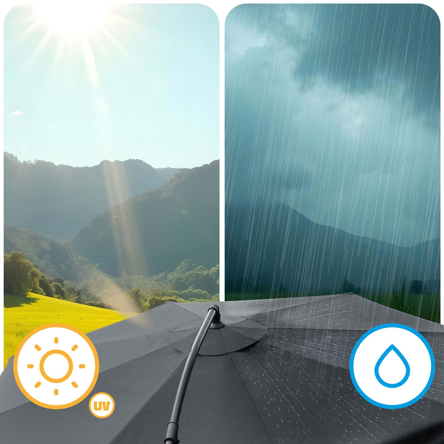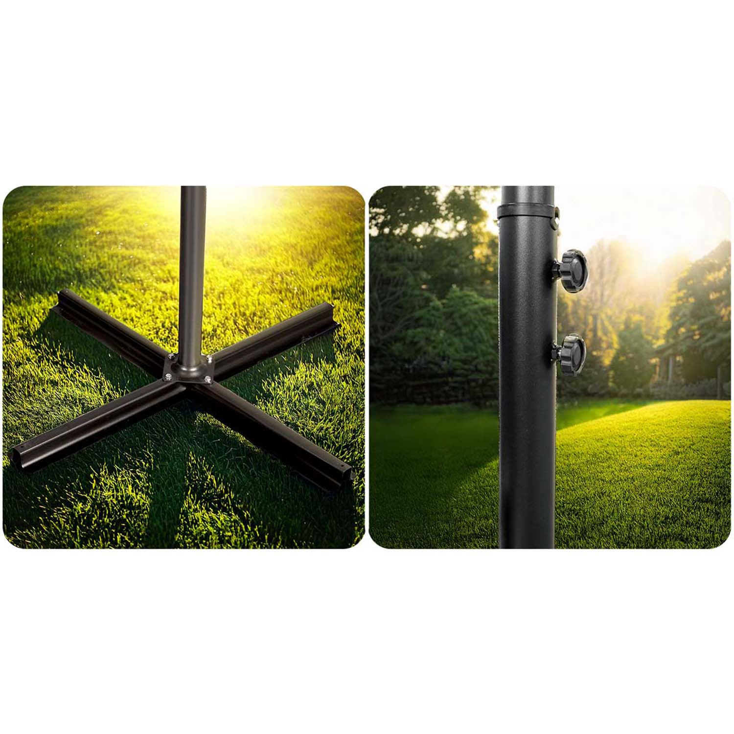 Pokrowiec z wytrzymałego materiału Oxford doskonale chroni parasol przed szkodliwym działaniem promieni UV i innymi czynnikami atmosferycznymi, zapobiegając blaknięciu materiału oraz wydłużając jego żywotność.