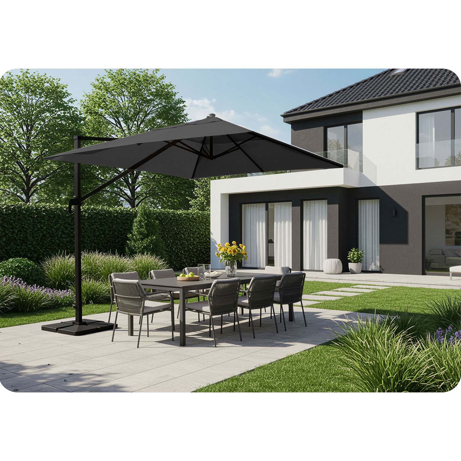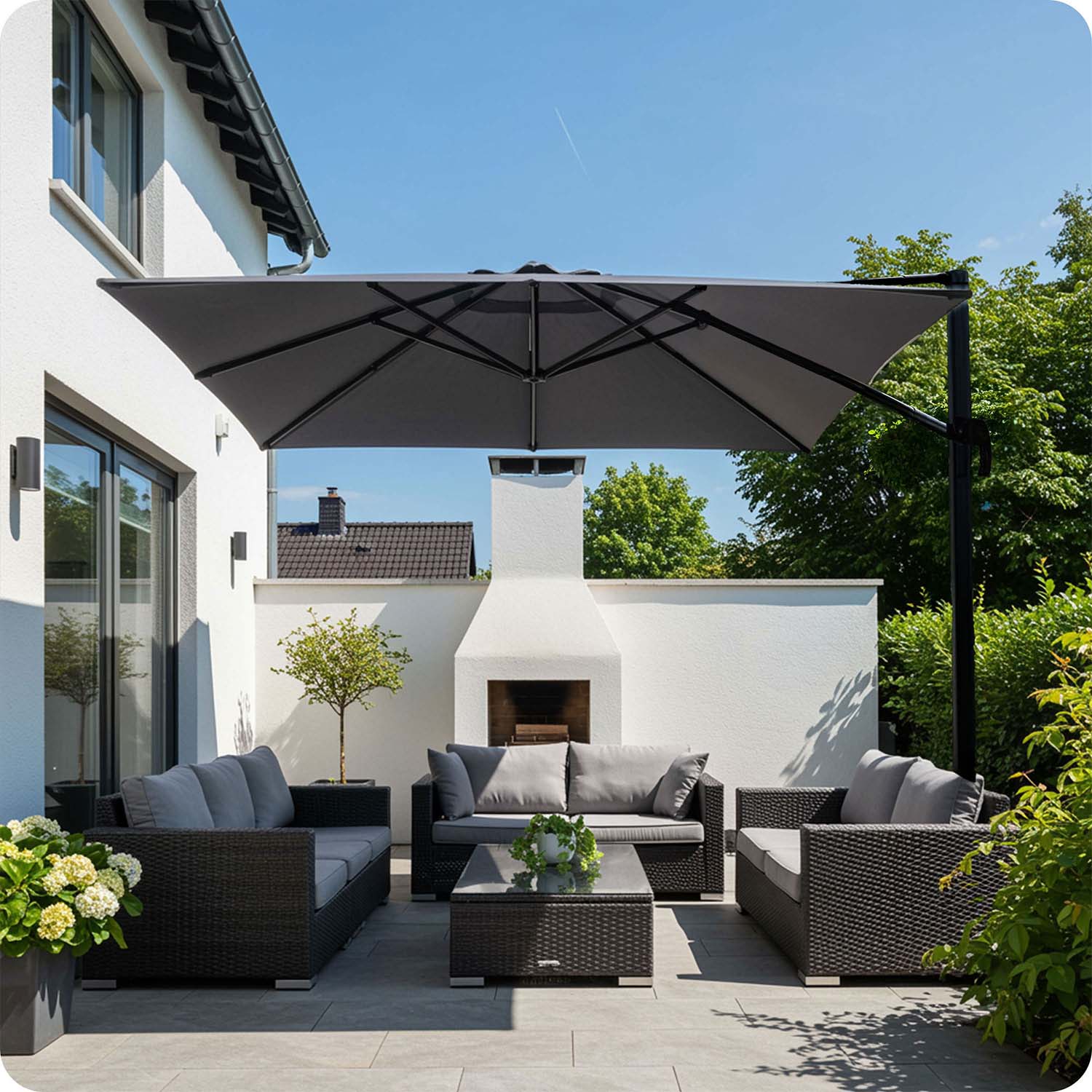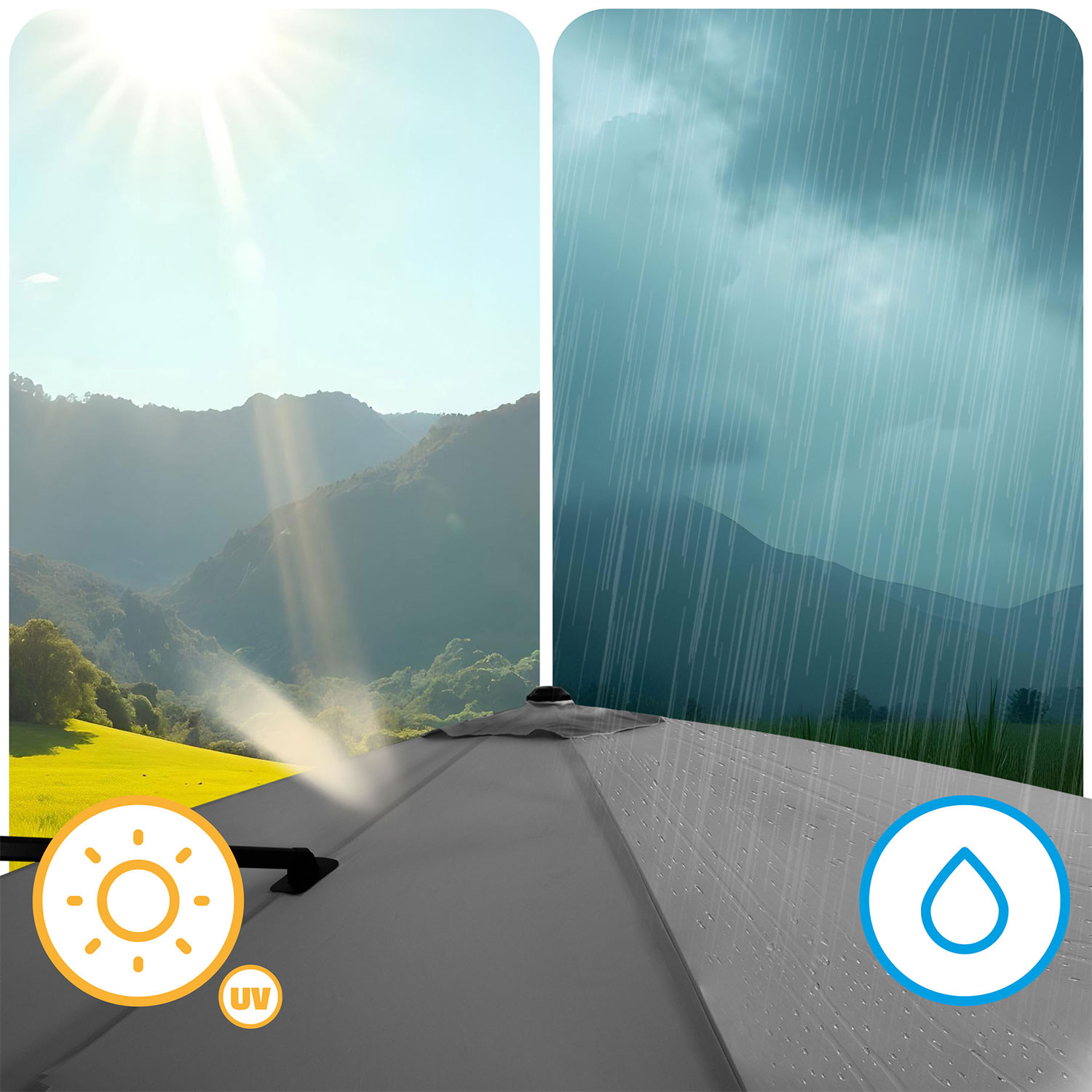 Pokrowiec z wytrzymałego materiału Oxford doskonale chroni parasol przed szkodliwym działaniem promieni UV i innymi czynnikami atmosferycznymi, zapobiegając blaknięciu materiału oraz wydłużając jego żywotność.