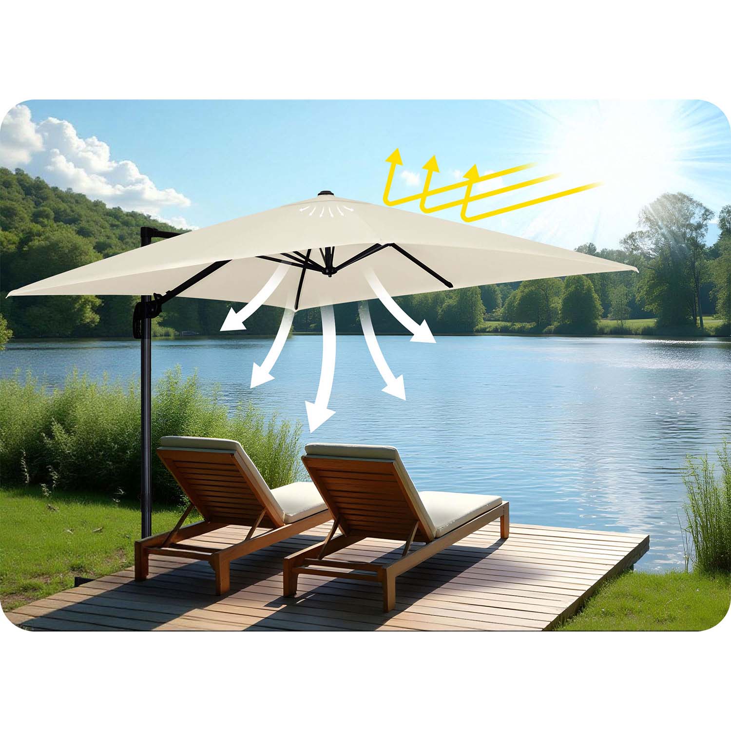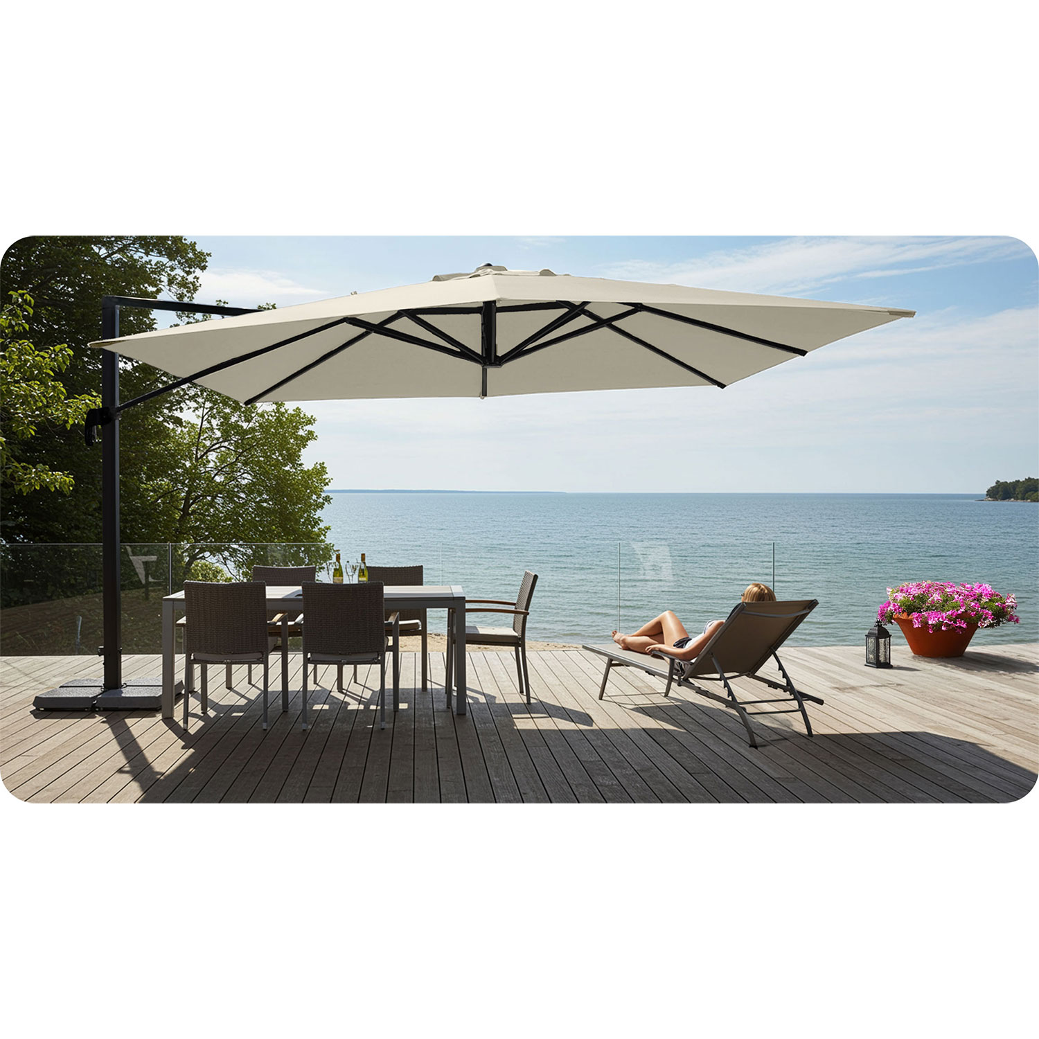Pokrowiec z wytrzymałego materiału Oxford doskonale chroni parasol przed szkodliwym działaniem promieni UV i innymi czynnikami atmosferycznymi, zapobiegając blaknięciu materiału oraz wydłużając jego żywotność.