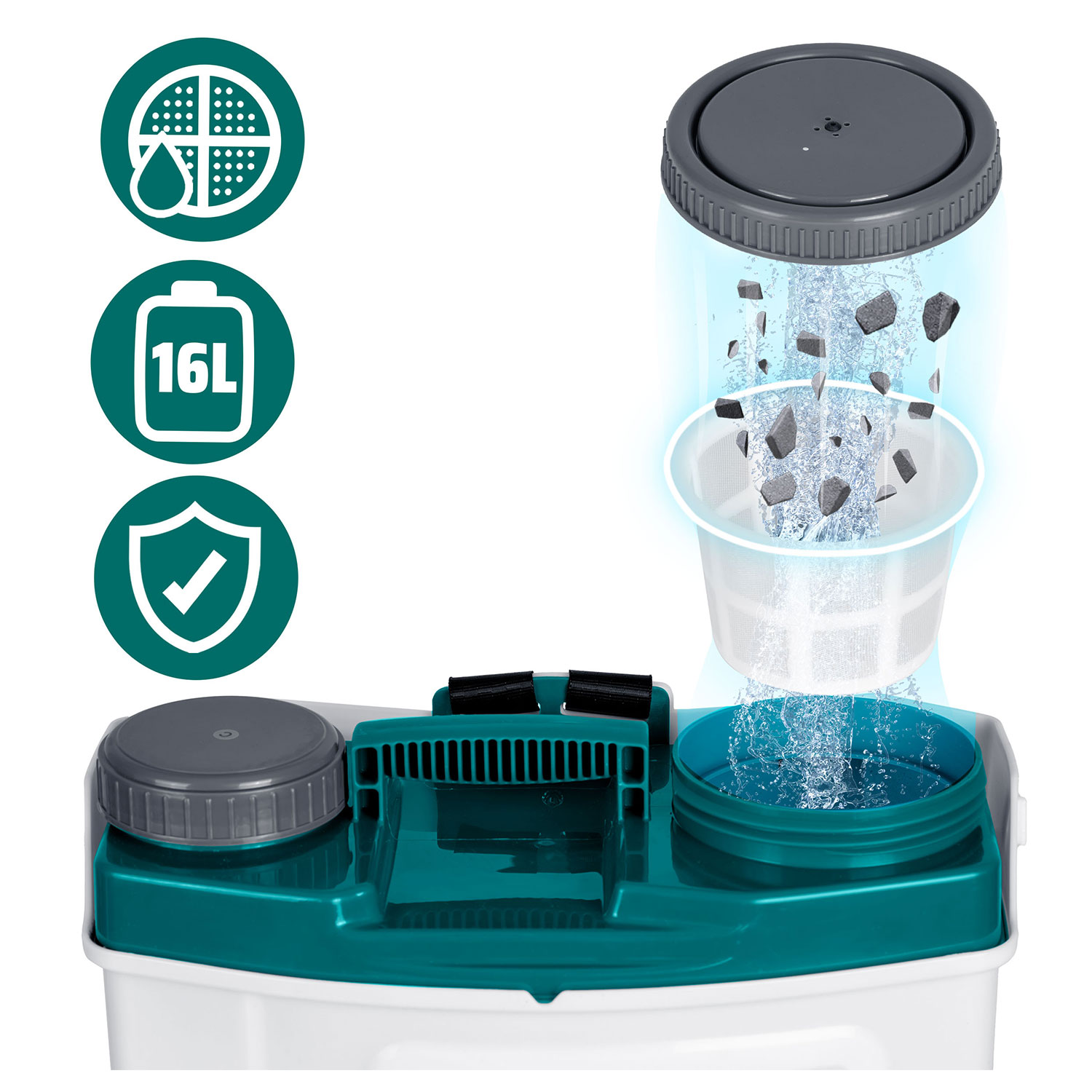 ✅ 16 litrów pojemności: większy zbiornik jest szczególnie przydatny w dużych ogrodach czy na polach uprawnych.