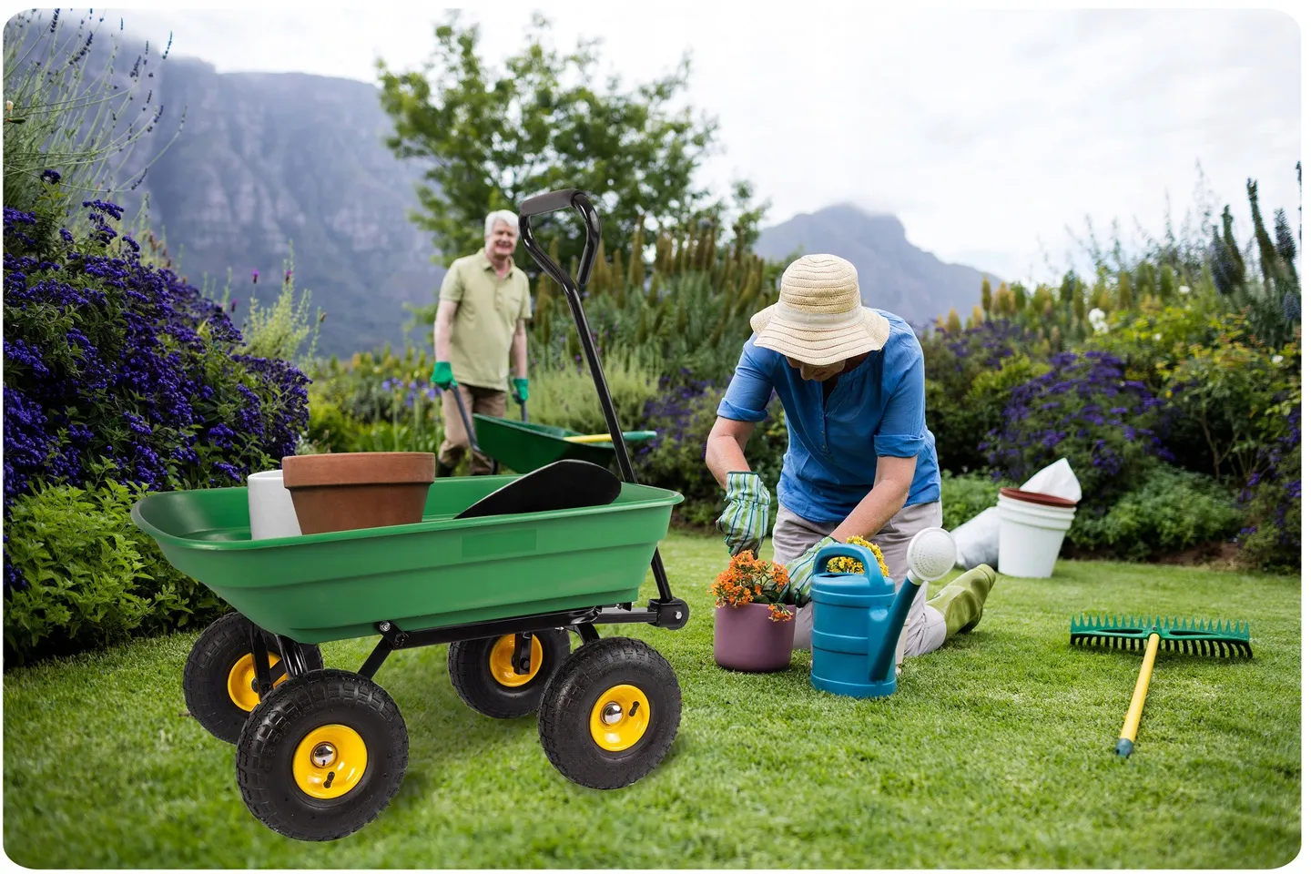 Skrętna oś zastosowana w wózku sprawia, że manewrowanie nim nawet z dużym obciążeniem, nie sprawi najmniejszego kłopotu.