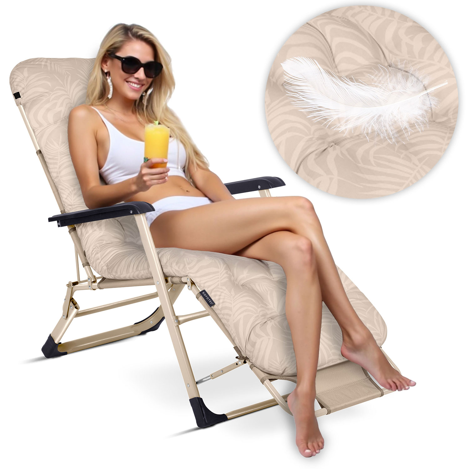 ✅ Solidna konstrukcja z mocnych, odpornych materiałów zapewnia długowieczność i stabilność leżaka.