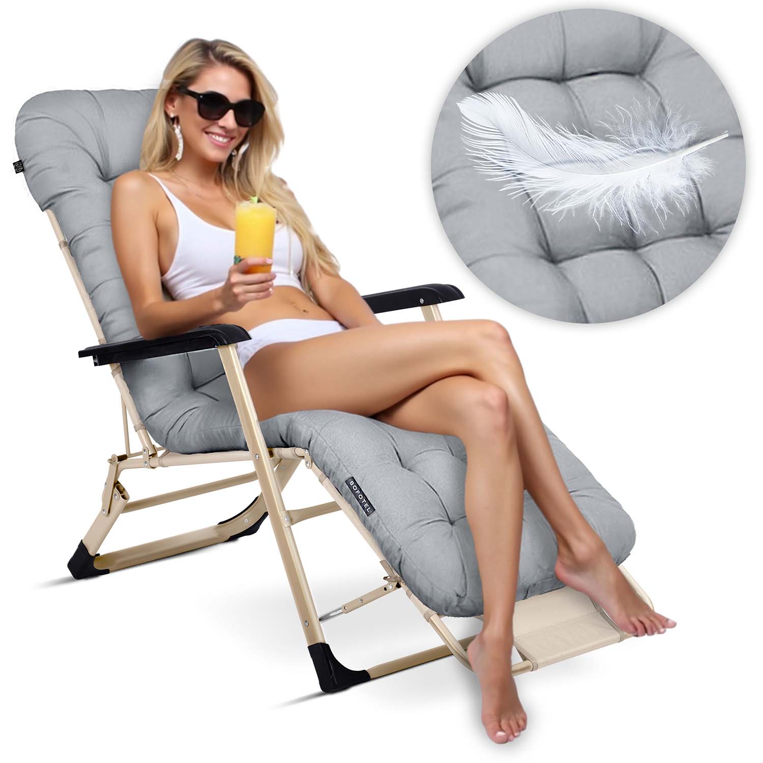 Leżak ogrodowy składany z poduszką Sofotel ChillWell jasno szary