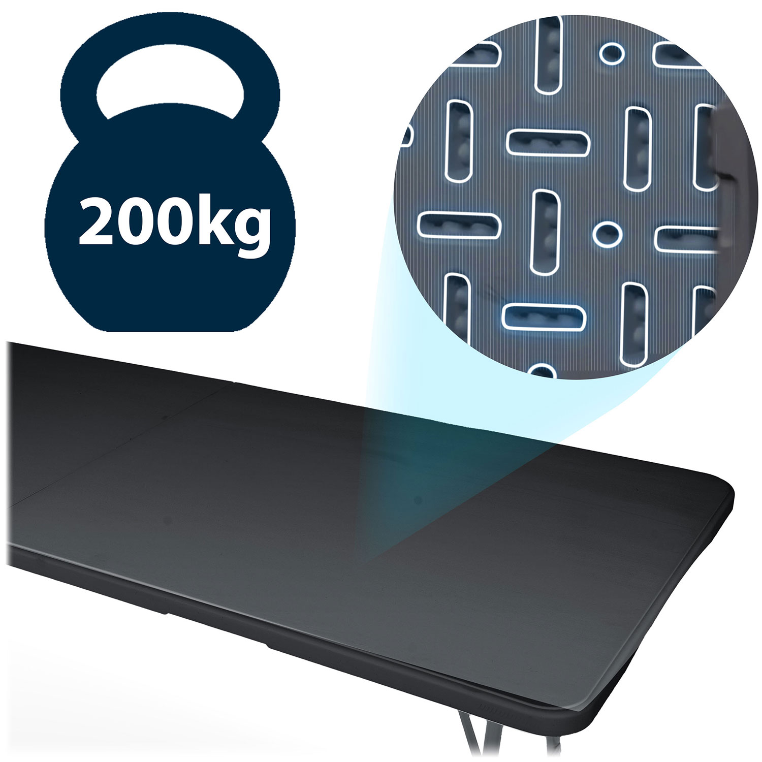 Dzięki technologii wtryskowej oraz specjalnym wytłoczeniom i żebrowaniu konstrukcja stołu jest wyjątkowo sztywna i odporna na odkształcenia.