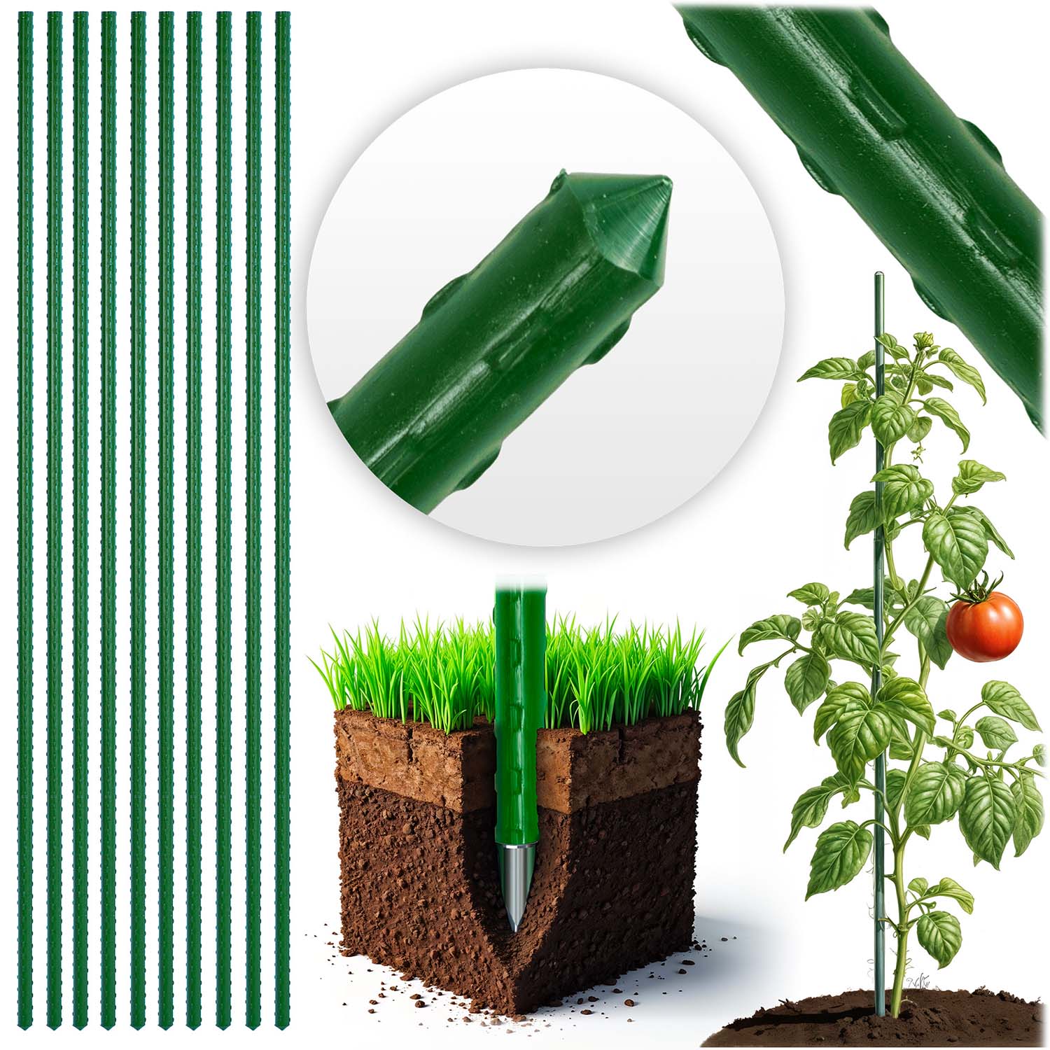 Wzmocniona końcówka i solidne osadzenie w ziemi zapewniają idealne podparcie nawet dla ciężkich, owocujących roślin.
