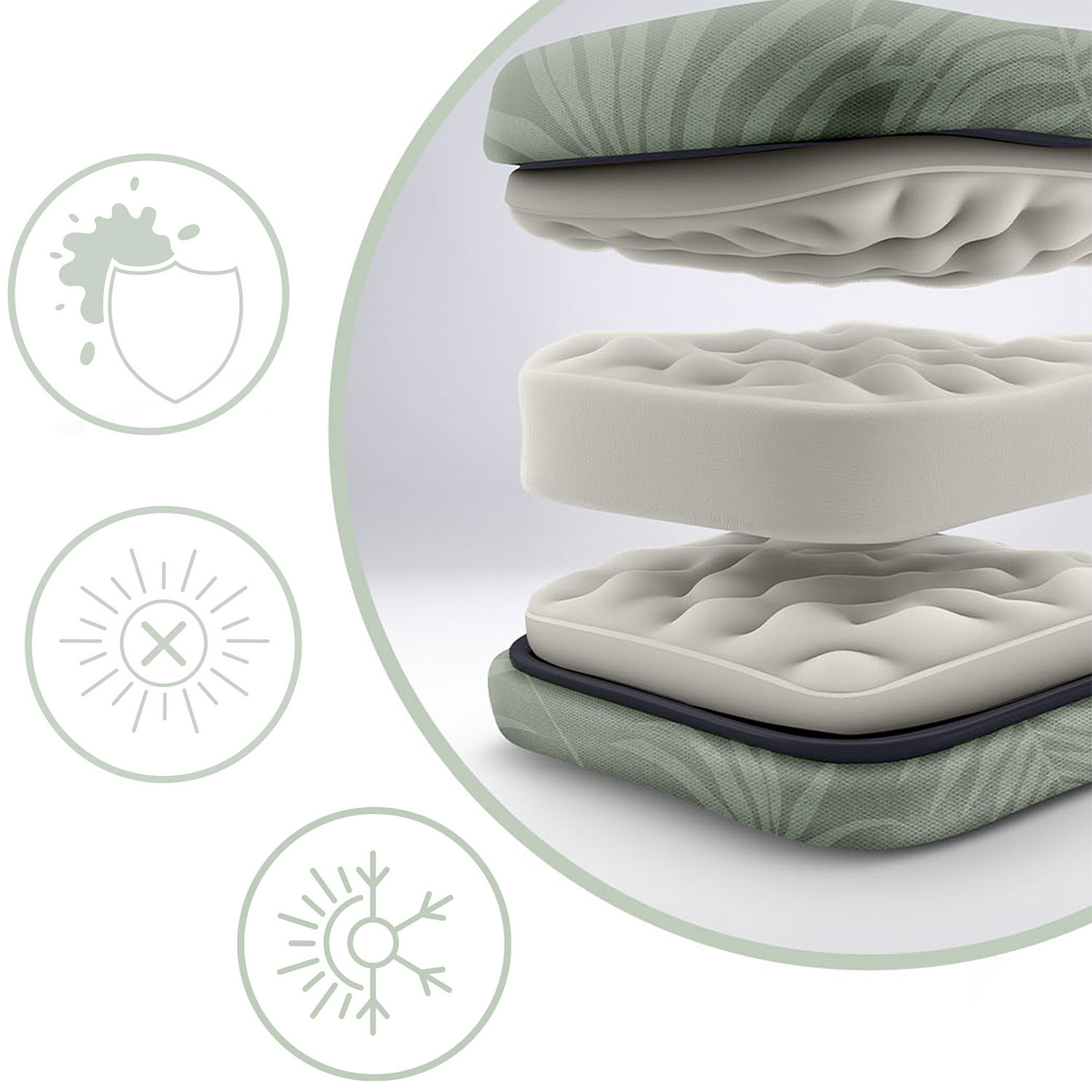 ✅ Pikowana, mocno wypchana poducha, odporna na ugniatanie i wtłoczenia.