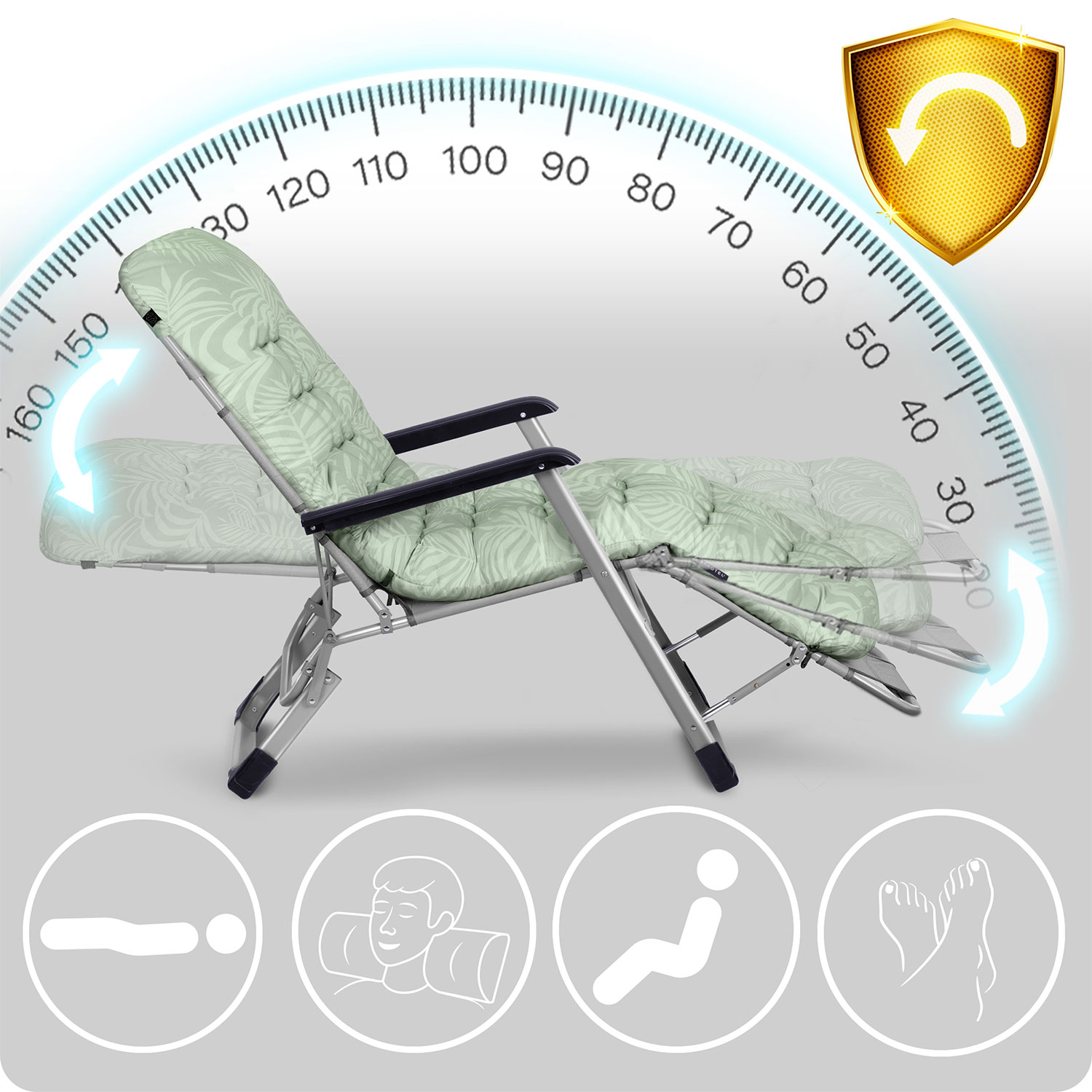 ✅ Solidna konstrukcja z mocnych, odpornych materiałów zapewnia długowieczność i stabilność leżaka.