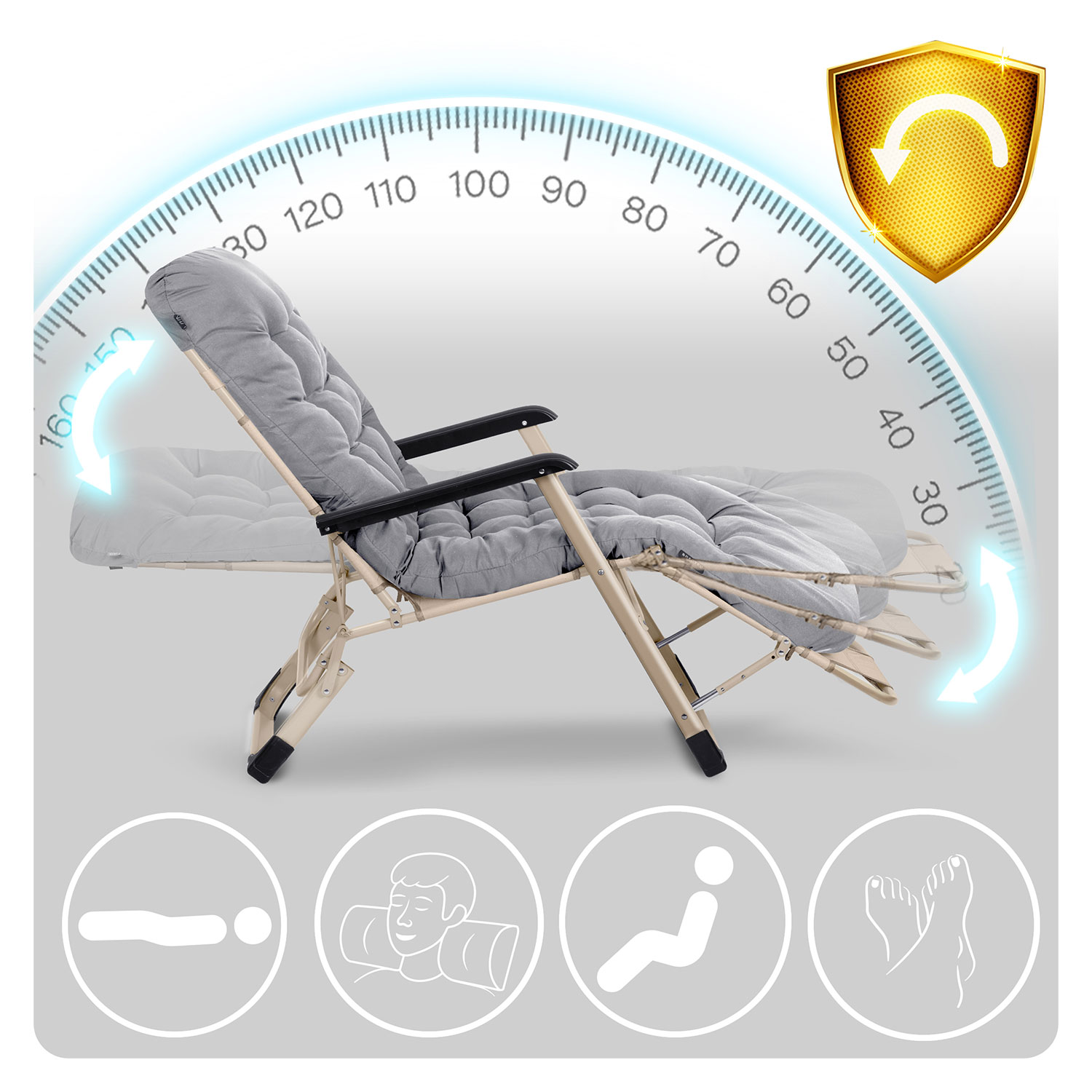 ✅ Solidna konstrukcja z mocnych, odpornych materiałów zapewnia długowieczność i stabilność leżaka.