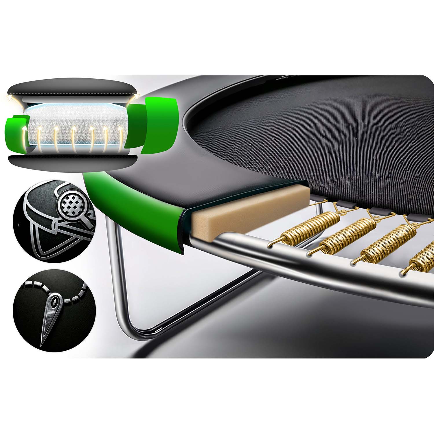 Stelaż trampoliny NEO SPORT został wykonany z wysokiej jakości stalowych rurek, odpornych na korozję, promieniowanie UV i intensywne użytkowanie.