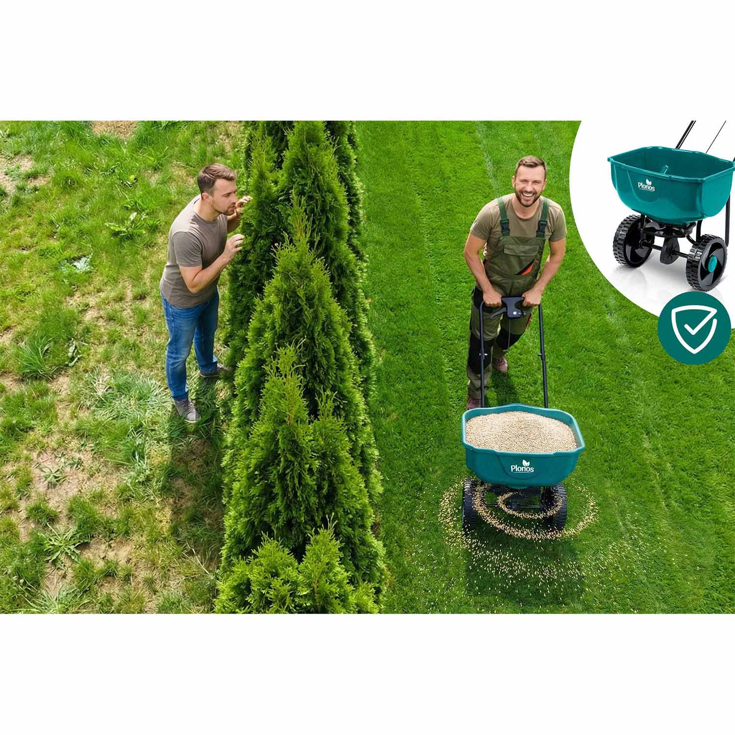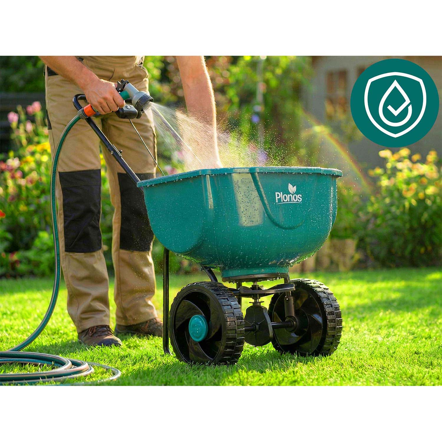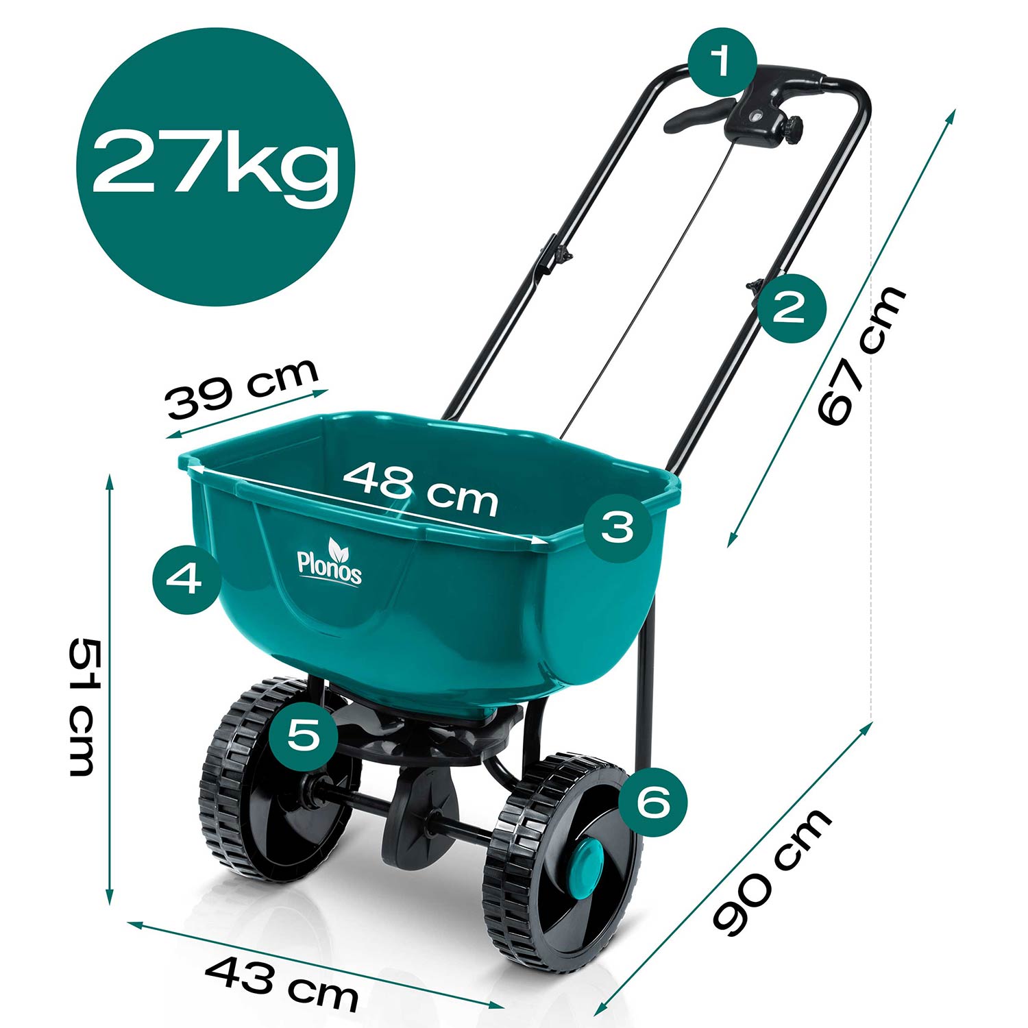 Siewnik 27 l Plonos wyróżnia się ergonomiczną rączką, która minimalizuje zmęczenie. Innowacyjna regulacja w uchwycie pozwala precyzyjnie dostosować tempo rozsiewu, a dźwignia zatrzymująca rozsiew zapewnia pełną kontrolę i wygodę w każdej sytuacji.